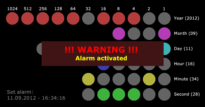 - Jednoduché binární hodiny na plochu s možností nastavení alarmu