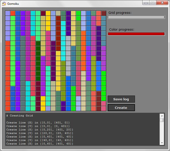 - Sice název je shodný s japonskou hrou, ale jedná se pouze o generování barevného pole dlaždic, kde se pro každou dlaždici loguje její umístění